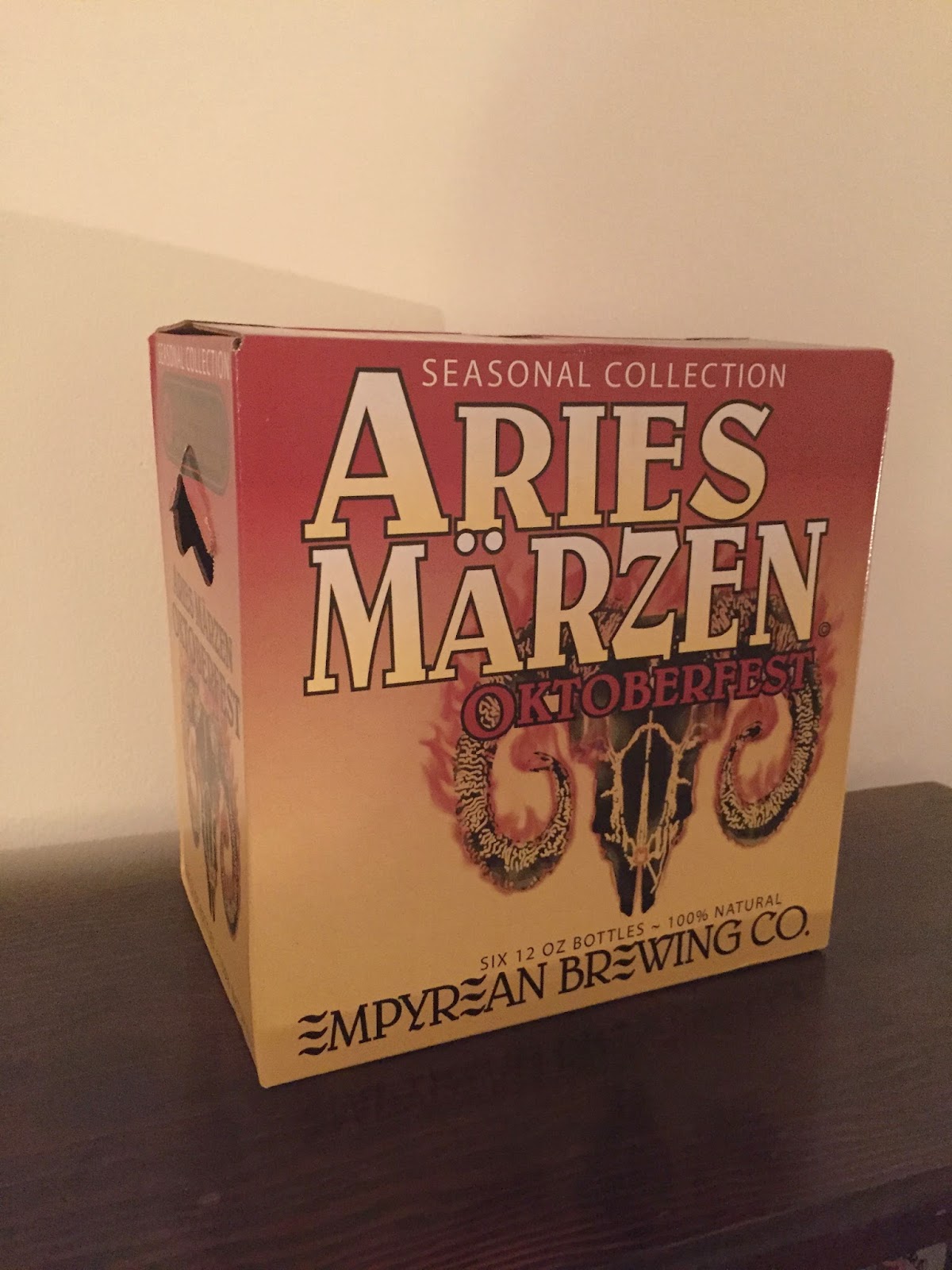 This is a pretty classic Oktoberfest beer. Very smooth, very drinkable. It isn’t as caramel heavy as some other Oktoberfest beers, which makes it really versatile when it comes to food. If you’re looking for a solid Oktoberfest that wasn’t made my Sam Adams, Aries is the way to go. Get it before it's gone!